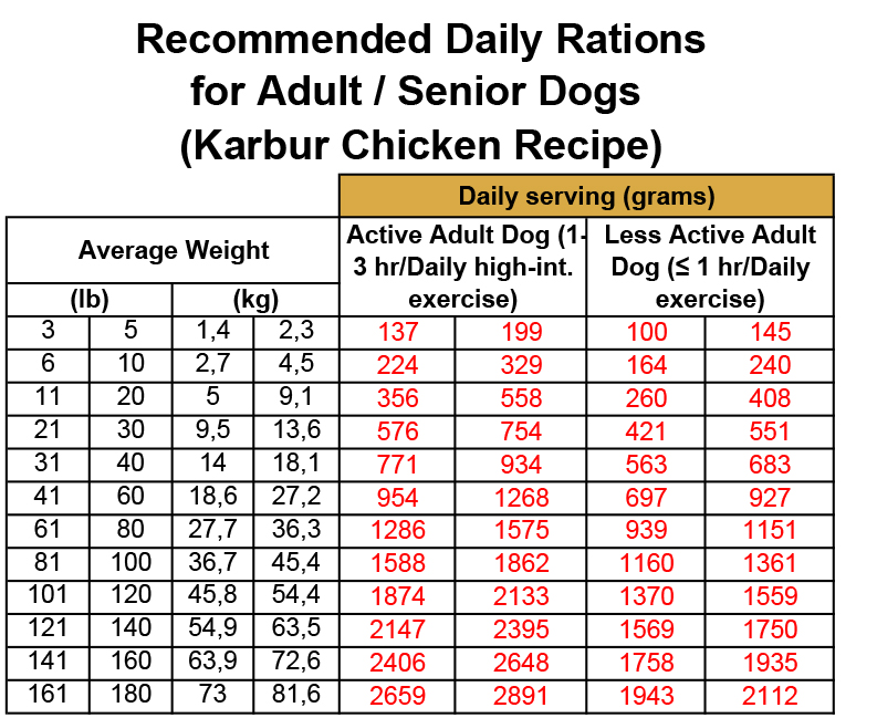 Adult / Senior Dog Daily Ration (Karbur chicken)