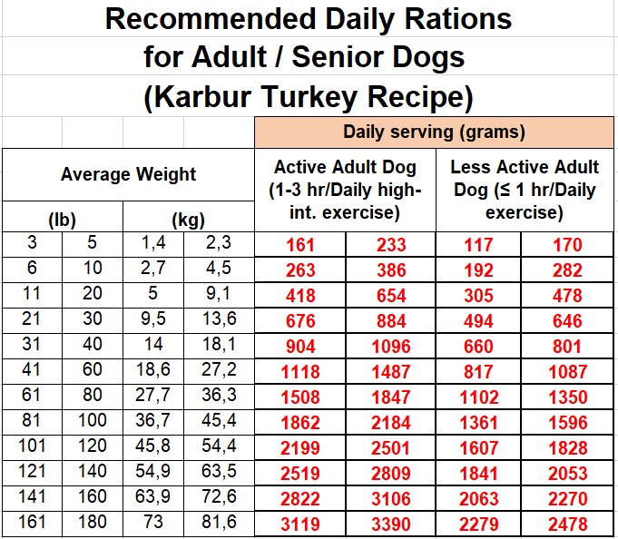 Adult / Senior Dog Daily Ration (Karbur turkey)