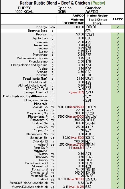 • This formula is developed in order to meet the Association of American Feed Control Officials (AAFCO) dog food nutritional profile standards for adult dogs and puppies. (Official AAFCO comparison charts provided in photo gallery)