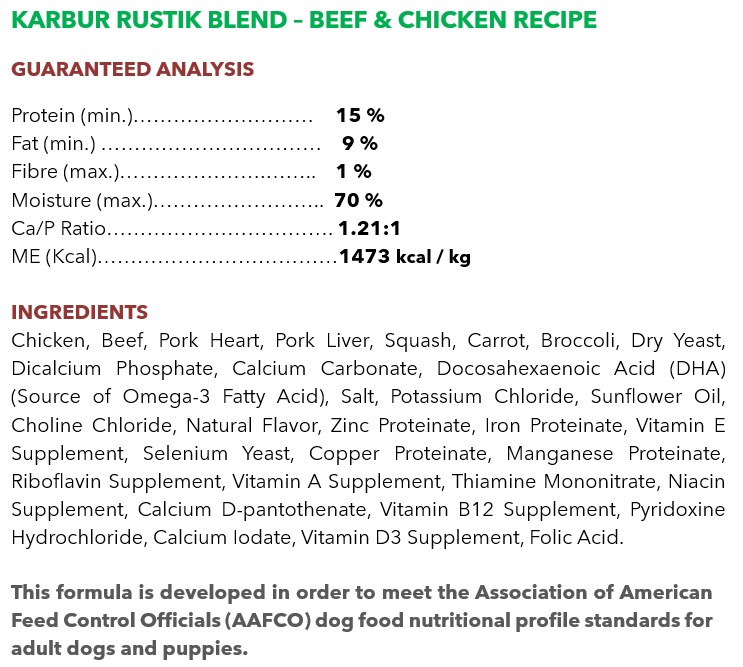 Complete Raw Food Formula consisting of Beef & Chicken Meat, Pork Organs, Vegetables, Vitamins, Minerals, and Omega-3 Fatty Acids (for Adult Dogs & Puppies).