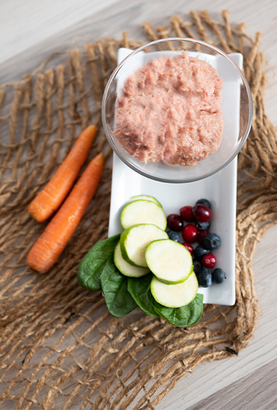 Viande de poulet avec abats (cœur & foie de poulet), pour chiens et chats.