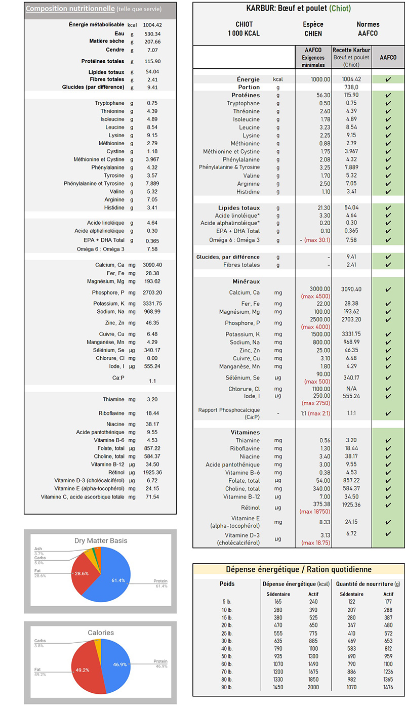 Composition nutritionnelle et Analyses
